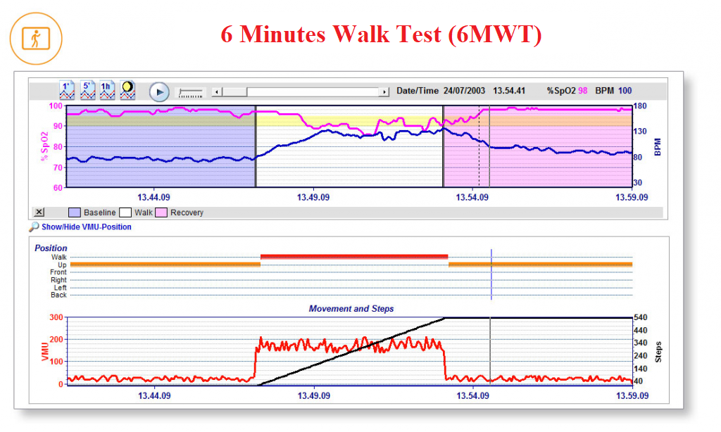 | 6MWT test: | %SPO2, BPM, Tbaseline, Twalking,Trecovery, Distance, T2%ΔSPO2,T4%ΔSPO2, Predicted, %Predicted,AUC/Distance, Dyspnea, Dyspnea, Fatigue, Diastolic, Systolic, Steps,VMU, O2-GAP, O2 |